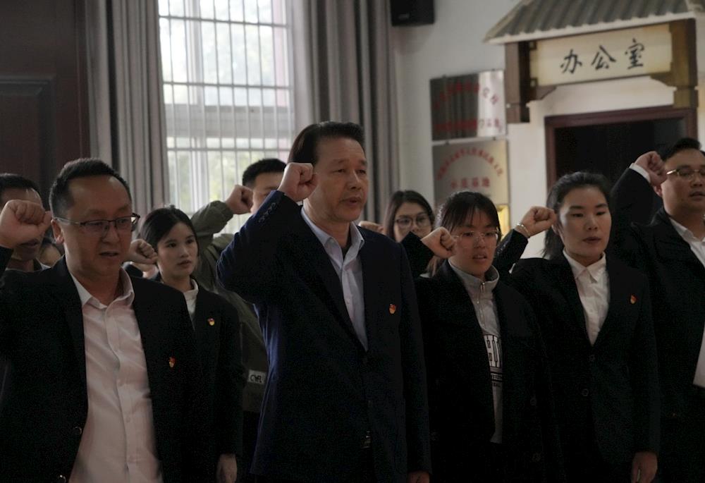 接着,大家来到红七红八军河池整编阅兵纪念馆,韦元秀书记介绍纪念馆情况,王昊玮老师带领大家参观纪念馆并在“广安昌盐店”这个位置,分享“200 斤盐背后的真情故事”,黄颖老师带领大家重温入党誓词,声声誓言在空气中回荡,彰显着党员们不忘初心、牢记使命的坚定信念。